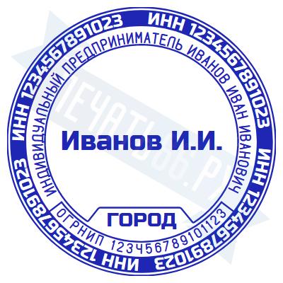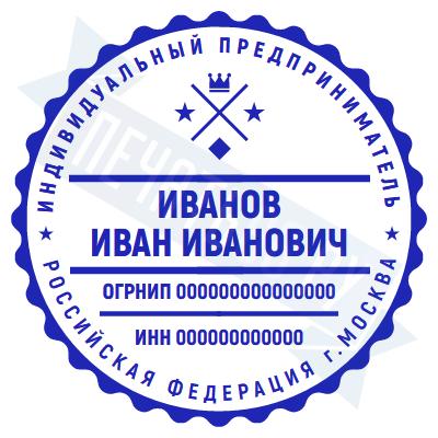 - Печать ИП стандартная на металлической оснастке Эйфель (чернение) D40, 40мм по цене 2627 рублей и еще 68 видов стандартных печатей